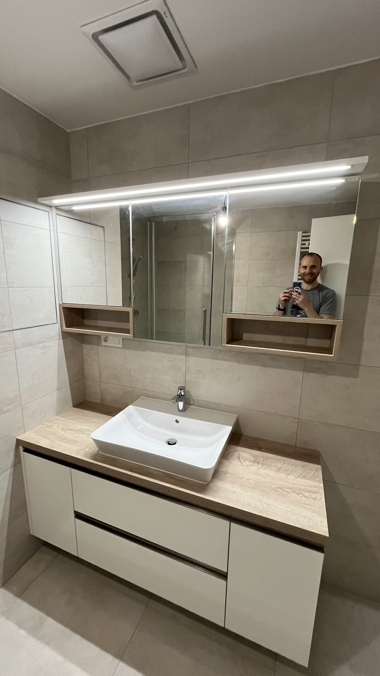 Koupelna je místo, kde začíná i končí každý den – a právě proto si zaslouží maximální péči. Tato koupelnová sestava byla navržena a vyrobena na míru konkrétnímu prostoru i přání zákazníka. Dbali jsme na praktičnost, dostatek úložného prostoru a čistý, nadčasový design.