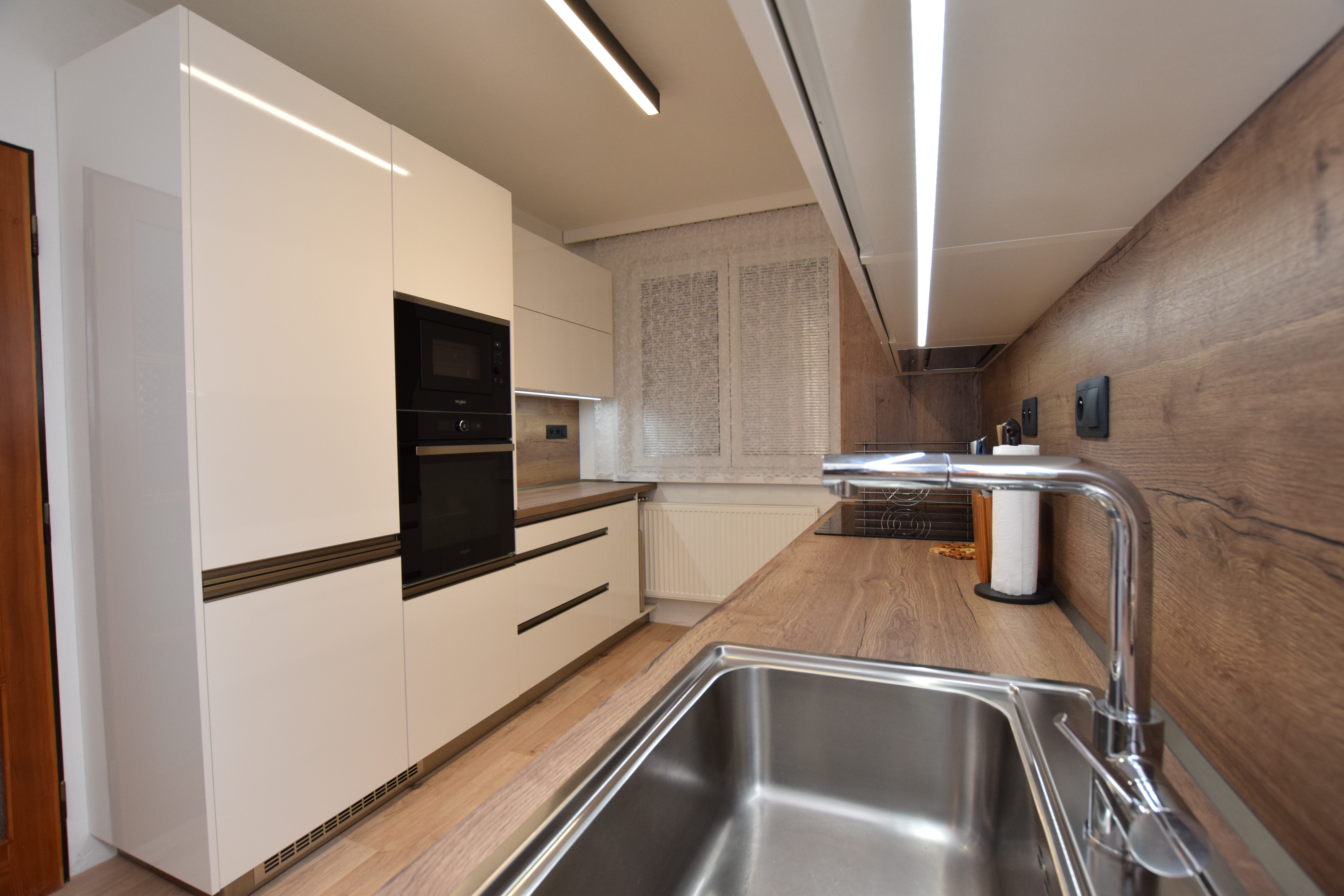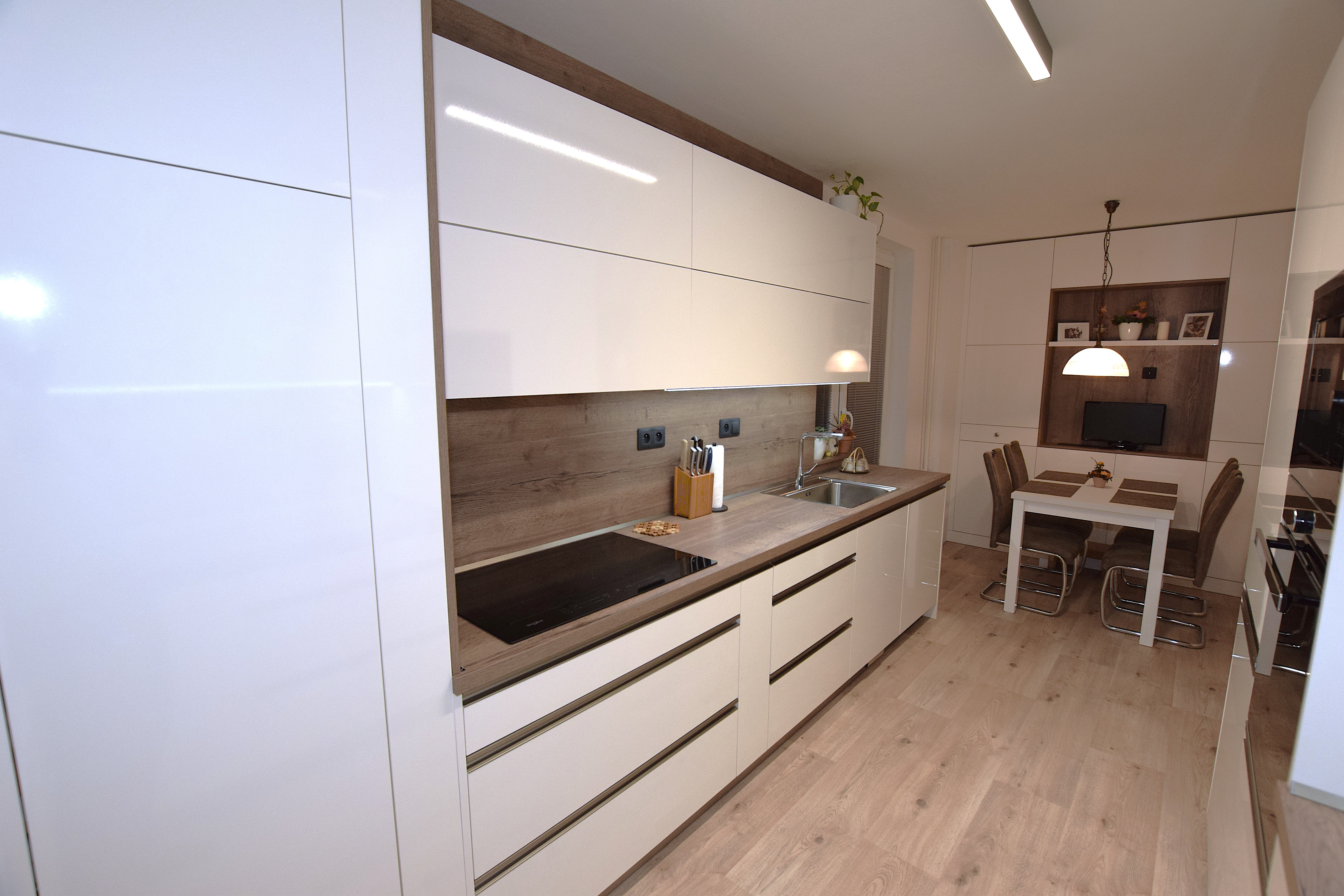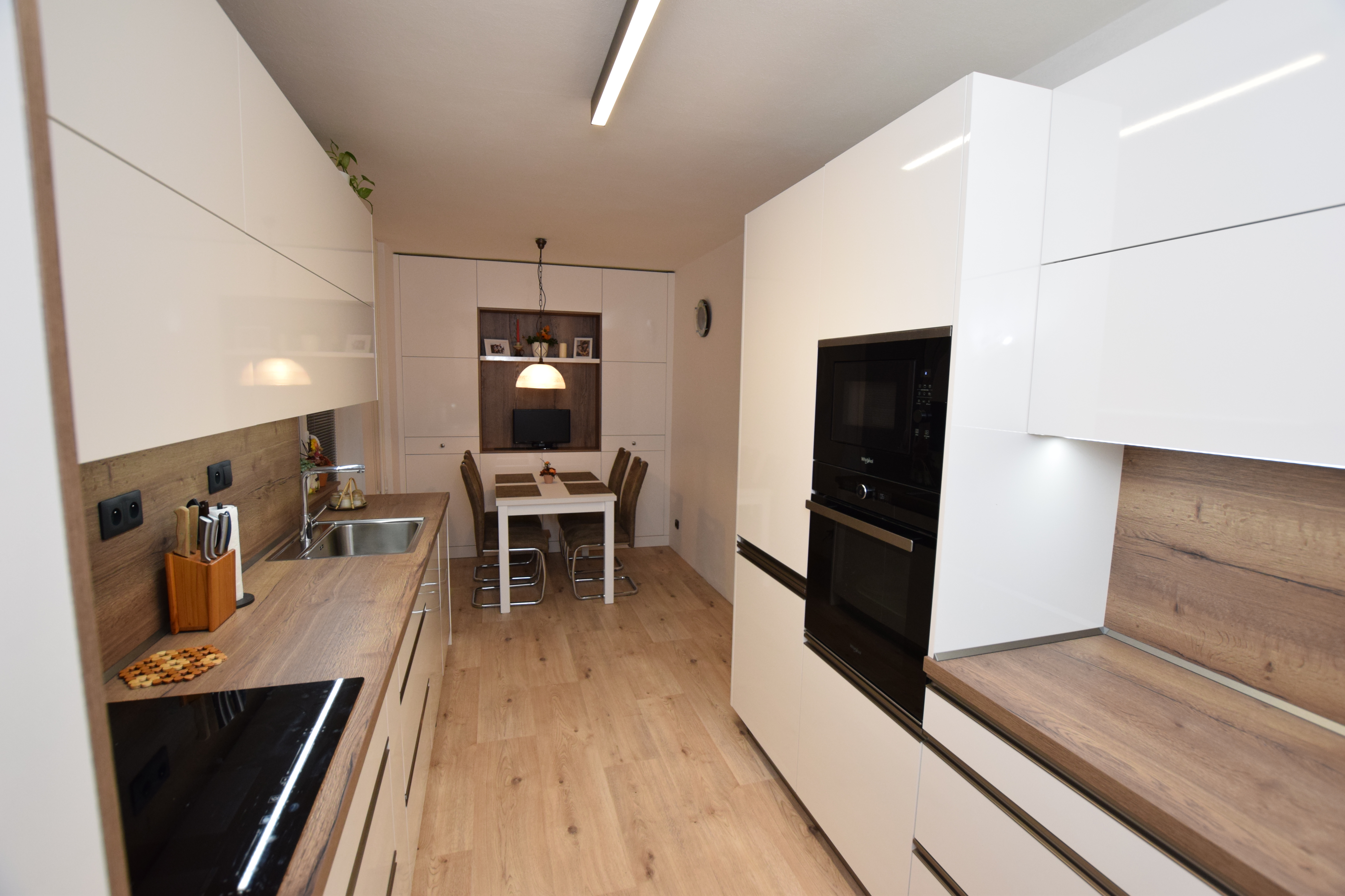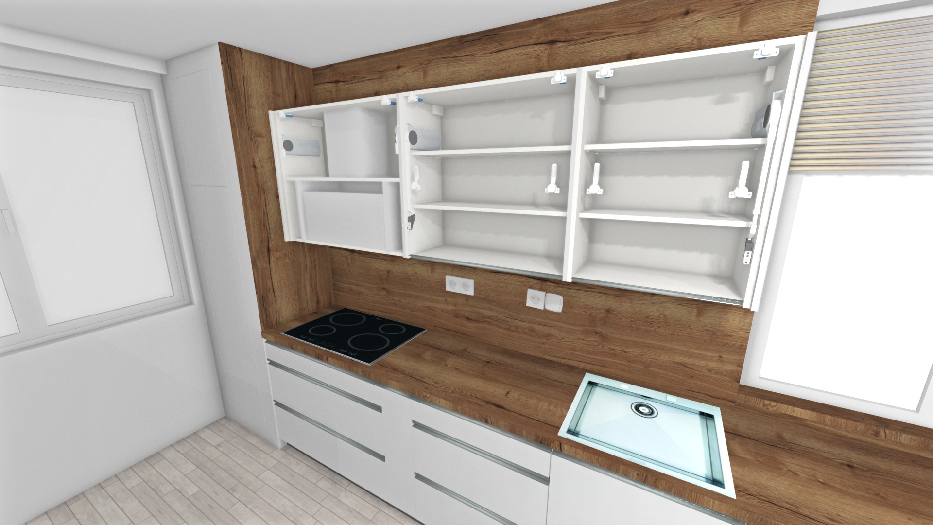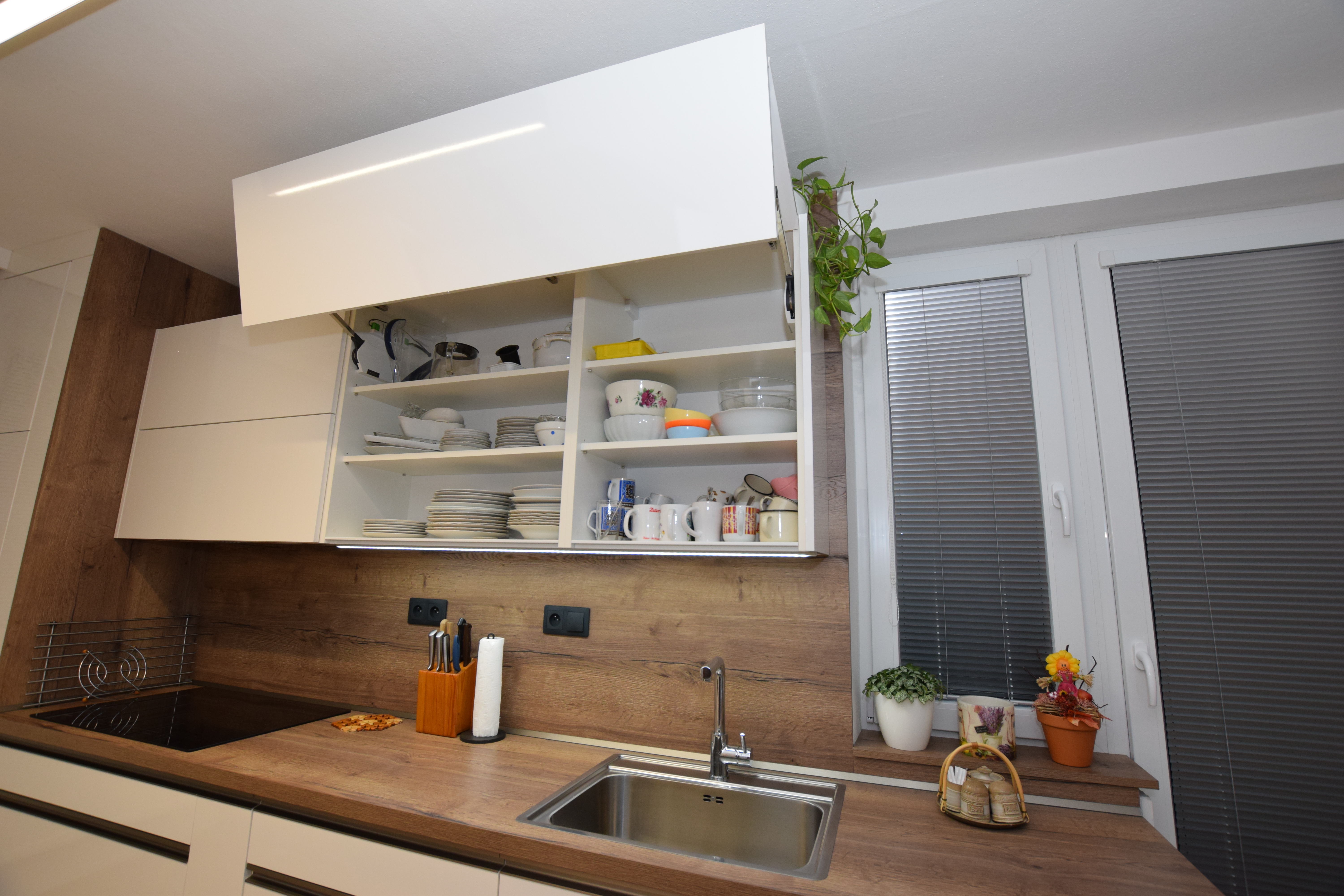 Tato menší kuchyňská linka byla navržena tak, aby maximálně využila prostor. Dvě pracovní plochy poskytují dostatek místa pro přípravu jídel. Praktické členění, kvalitní materiály a funkční uspořádání vytvářejí harmonický celek, který je ideální pro každodenní vaření.